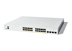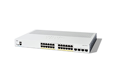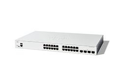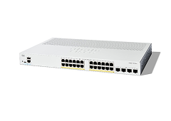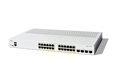 The Cisco Catalyst C1300-24P-4G is a managed 24 port Gigabit Ethernet switch with PoE+ and 4 SFP uplink ports, designed to provide both network connectivity and power to devices in small- to medium-sized business networks.